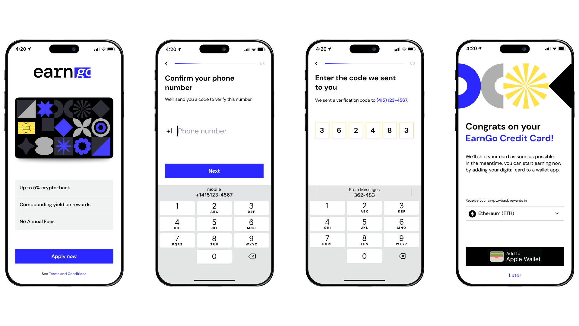 Backed by Visa, the largest credit card network, the EarnGo Credit Card aimed for global acceptance and seamless integration into existing financial systems.