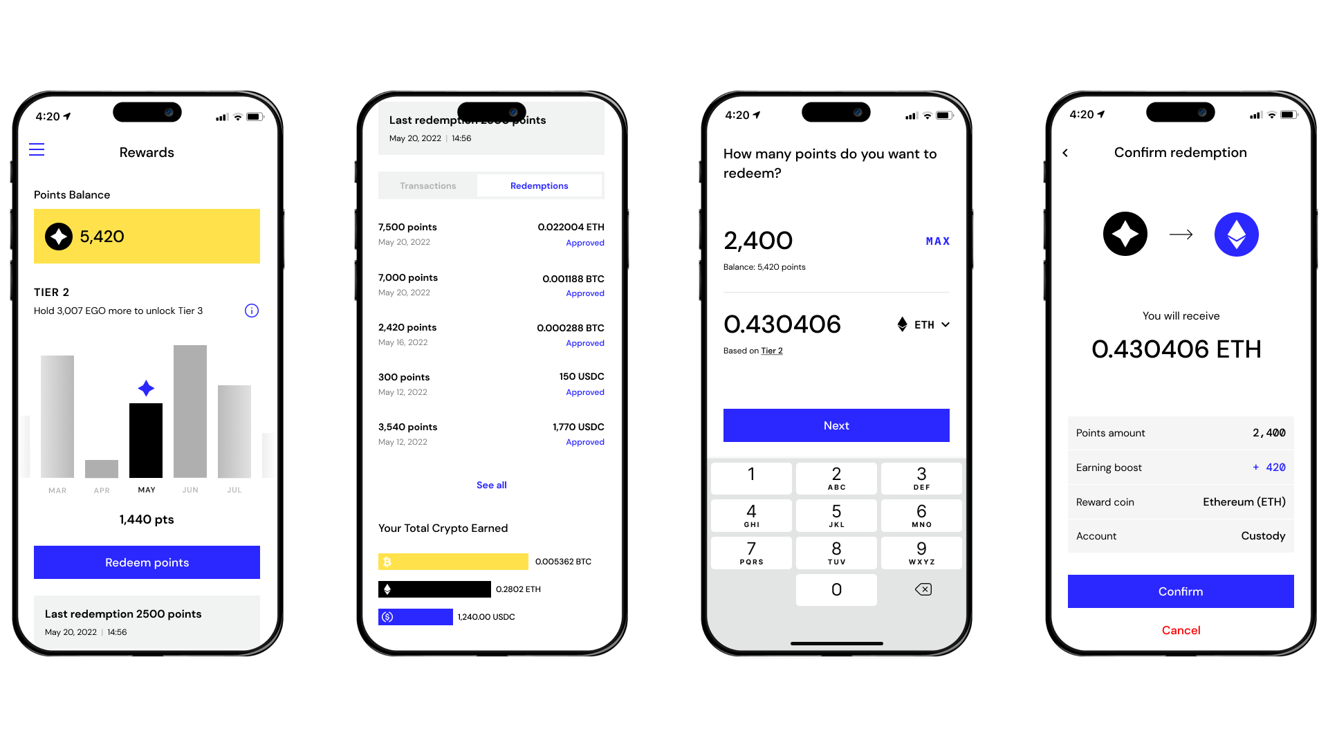 EarnGo allows users to choose their reward coin, enabling them to earn up to 5% crypto-back, facilitating compounding yields on rewards, all while enjoying the benefit of no annual fees.