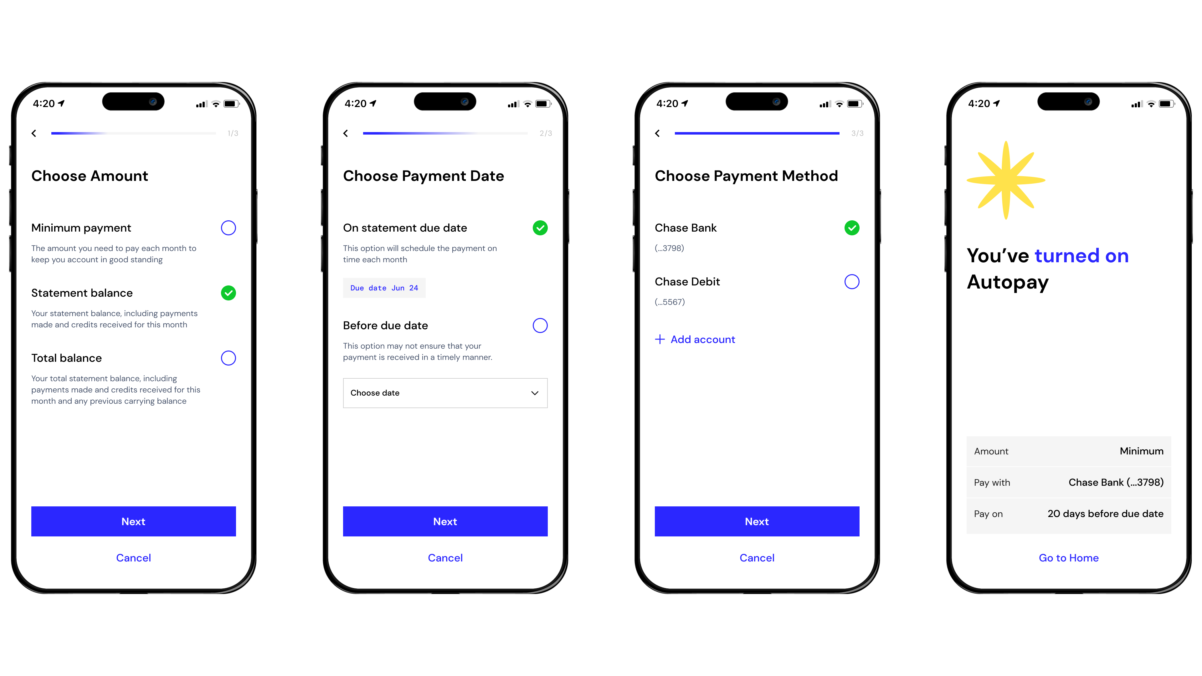 EarnGo enables users to pay their balance instantly, schedule future payments, or opt for auto-pay convenience. Staying informed about due dates and minimum payments helps users avoid late fees, allowing them to take control, steer clear of interest, and enjoy a hassle-free payment experience.